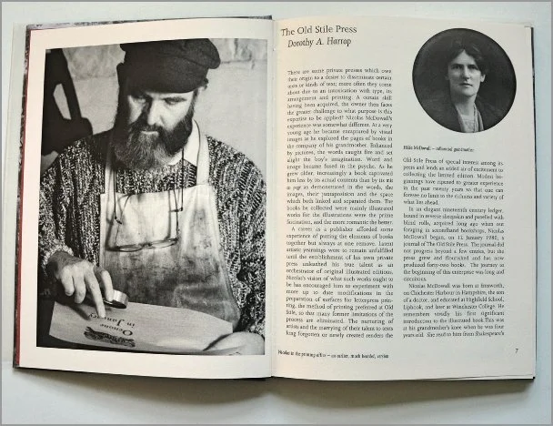 'The Old Stile Press' illustrates the development and work achieved at the Old Stile Press between the years 1979, when it was established, and 1999. Chapters of the book include its history and bibliography, as written and compiled by Dorothy A. Harrop, and the Press’s inspirations and its methods, written by Peter Wakelin. Further writings include accounts by Frances McDowall, and the company’s proprietor, Nicolas McDowall.